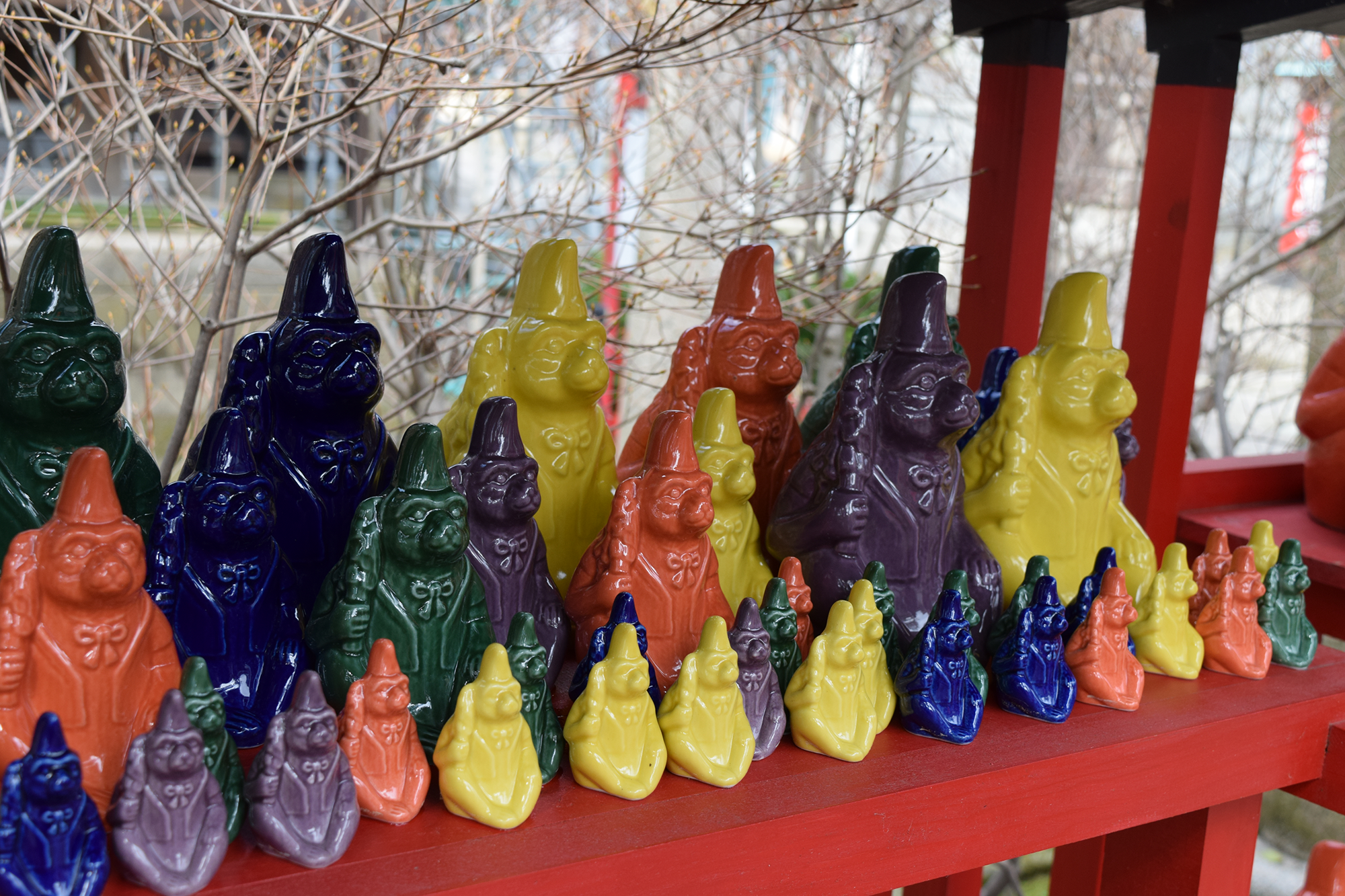 境内を散策されますと、御幣を持った猿を始め親子猿、手水舎屋根の猿、「見ざる、聞かざる、言わざる」即ち「良きことを見、良きことを聞き、良きことを言う」という教えの「三猿」など、あちらこちらに猿の姿が見られます。